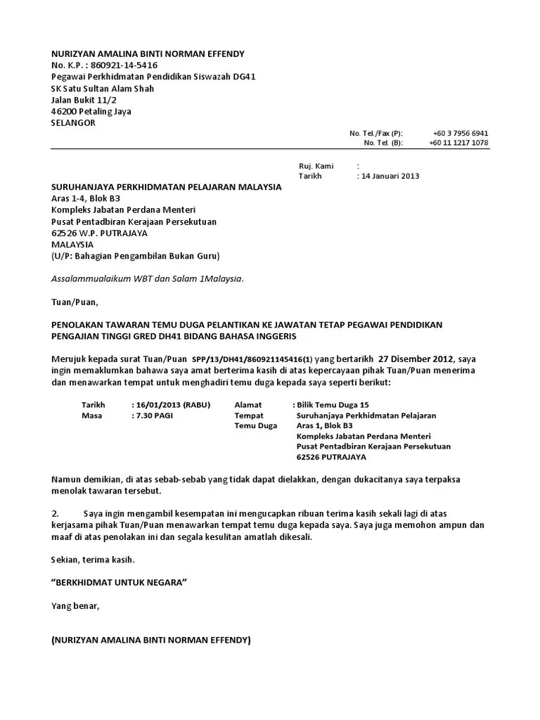 Contoh surat menolak tawaran kerja dengan sopan letter 7saudara com penolakan kimaku tolak dalam bahasa inggeris otosection.